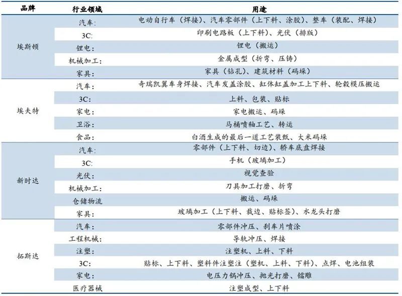 ▲国内主要工业机器人企业应用领域