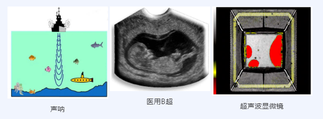 要解释这些问题,就绕不开“超声波”这个概念。超声波是指频率高于20000Hz的声波,它的方向性好,穿透能力强,易于获得较集中的声能,在水中传播距离远,可用于测距、测速、清洗、杀菌消毒等,在工程学、生物学、诊断学上有很多的应用。比如声呐技术用来进行鱼群探测、海底地质地貌勘测、水下通信及导航;医用B超广泛用于外科、心内科、消化内科、泌尿科和妇产科疾病的诊断;超声波扫描电子显微镜利用高频率超声波可探测物体内的结构、缺陷、以及对材料定性分析。