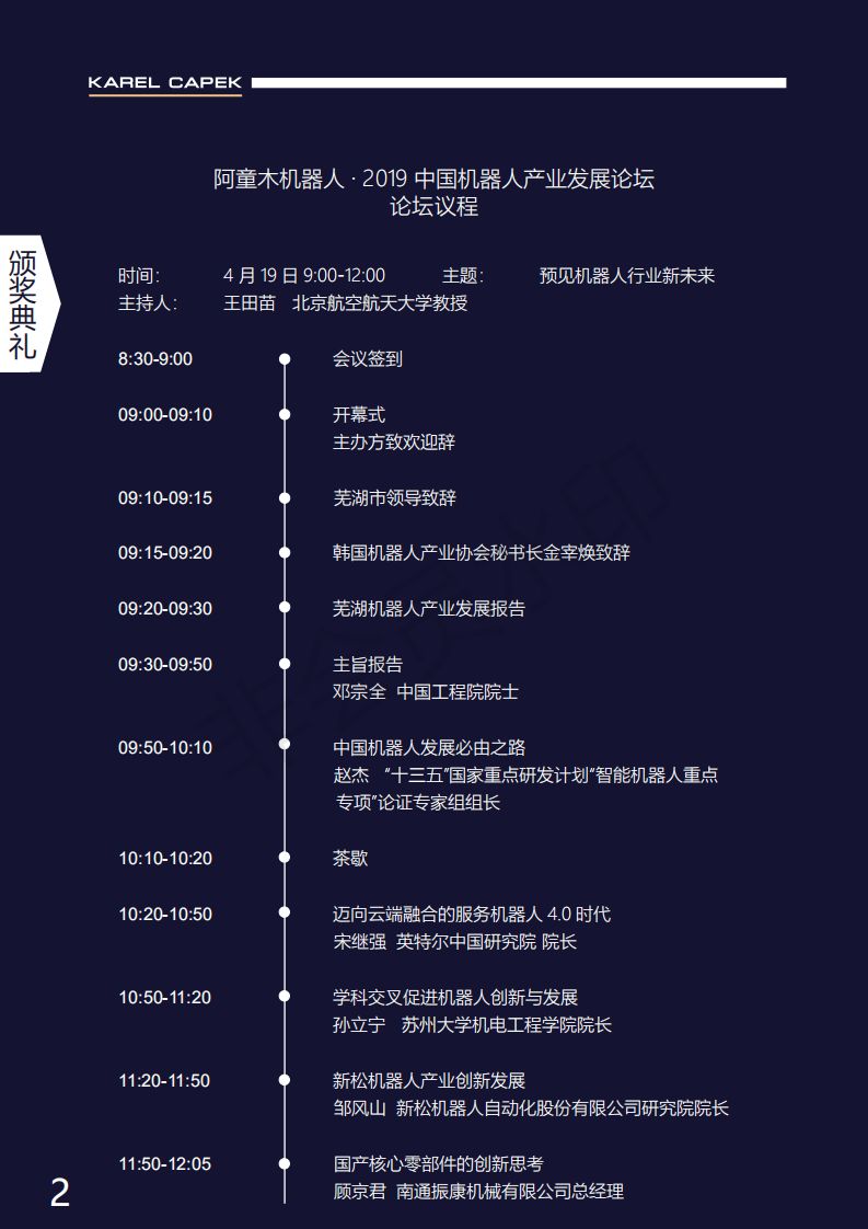 由米兰·(milan)中国机器人有限公司官网协办的2019中国机器人产业发展论坛暨第五届恰佩克颁奖典礼将于4月18-20日在安徽芜湖盛大举行。今日,大会议程震撼公布!