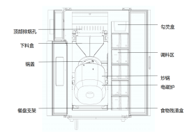 自动落料、自动翻炒、自动清洗、油烟处理数据通讯、安全预警、可选的调料方式